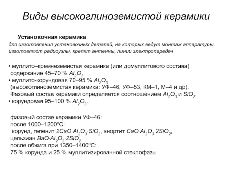 корунд, геленит 2СаО∙Al2O3∙SiO2, анортит СаО∙Al2O3∙2SiO2,