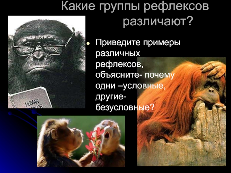 Приведите примеры различных рефлексов, объясните- почему одни –условные, другие- безусловные?