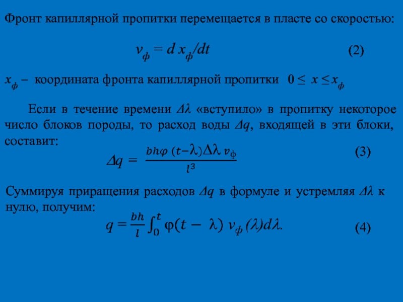 Если в течение времени Δλ «вступило» в пропитку некоторое число блоков породы, то расход воды Δq, входящей в эти блоки, составит: