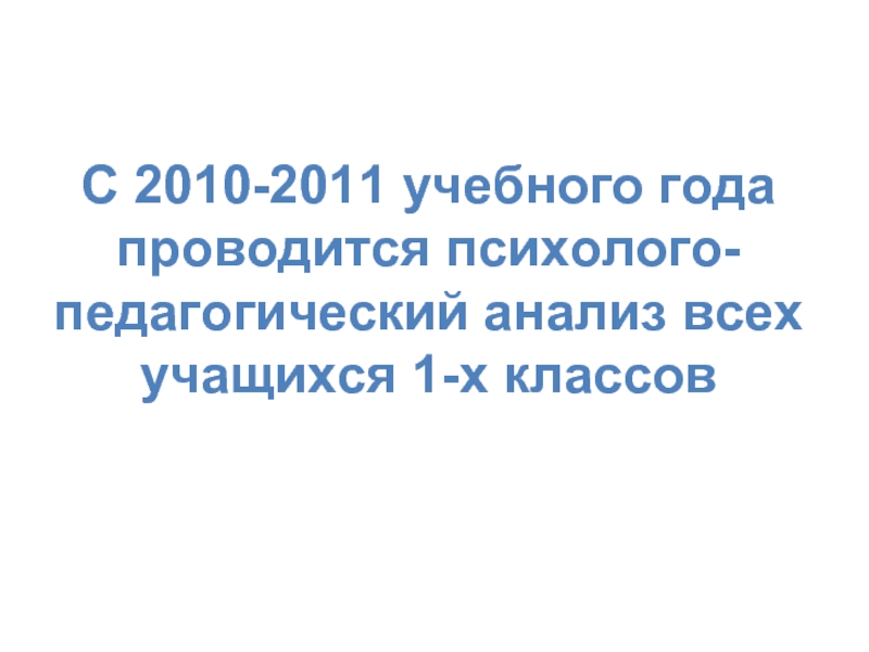 Слайд 3С 2010-2011 учебного года проводится психолого-педагогический анализ всех учащихся 1-х классов