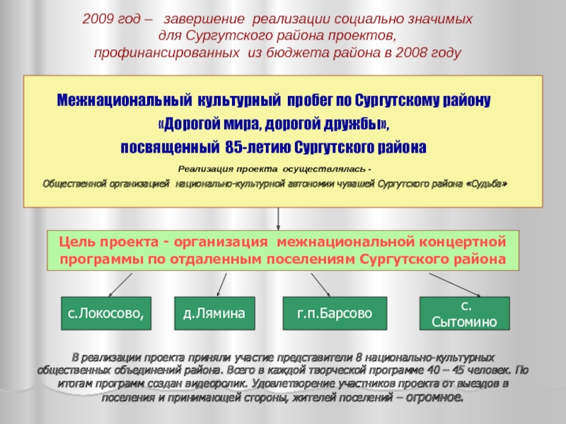 Цель проекта - организация межнациональной концертной программы по отдаленным поселениям Сургутского района