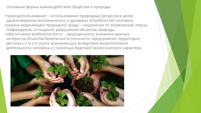 Слайд 13Взаимодействие общества и природы рассматривается в двух направлениях: