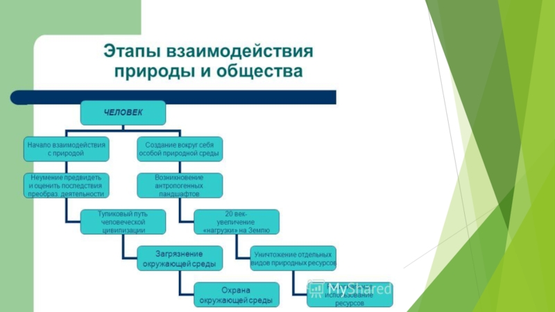 Слайд 7Первоначально отношения человека и природы представляли собой взаимное воздействие друг на