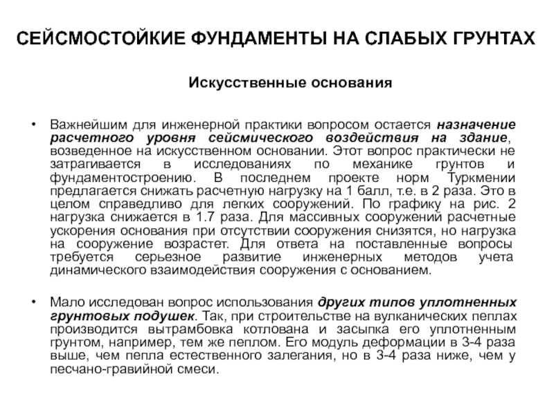 СЕЙСМОСТОЙКИЕ ФУНДАМЕНТЫ НА СЛАБЫХ ГРУНТАХ