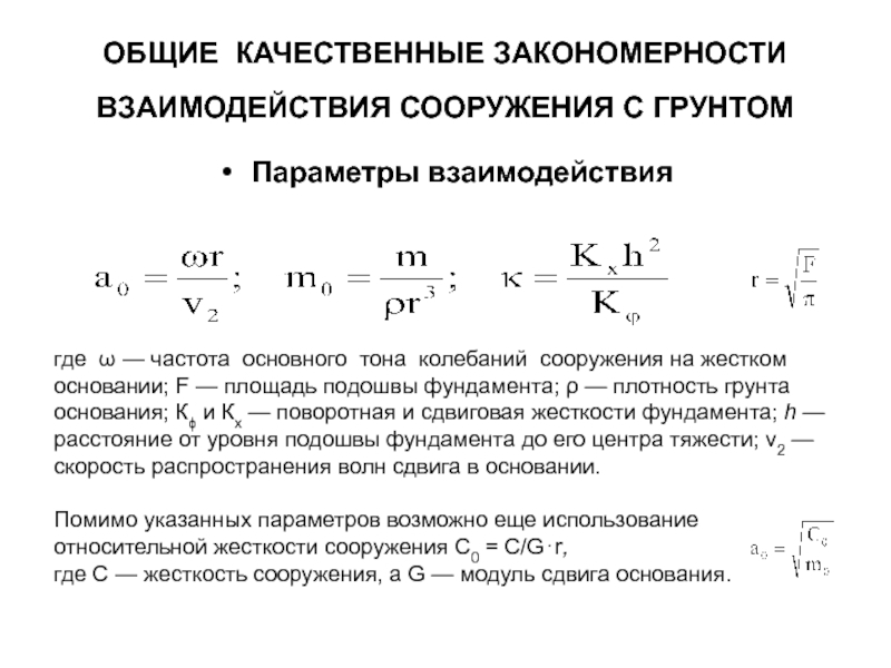 где, (F0=10 м2); - коэффициент, принимаемый для песков 1.0, для супесей и суглинков 1.2, для глин и крупнообломочных грунтов 1.5. Аналогично оцениваются жесткости пружин Кх и Кϕ , моделирующих сдвиговые и поворотные колебания фундамента
