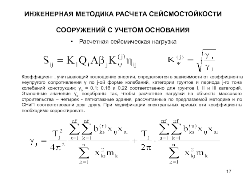 где lx и ly - размер подошвы фундамента в направлениях по осям X и Y; l0 - размер подошвы фундамента в направлении фронта сейсмической волны, L - длина сейсмической волны.