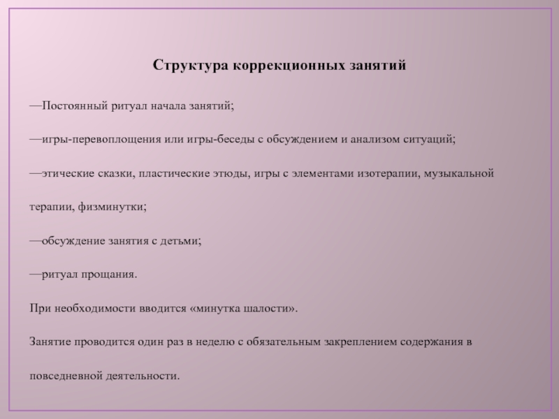 Слайд 8Структура коррекционных занятий