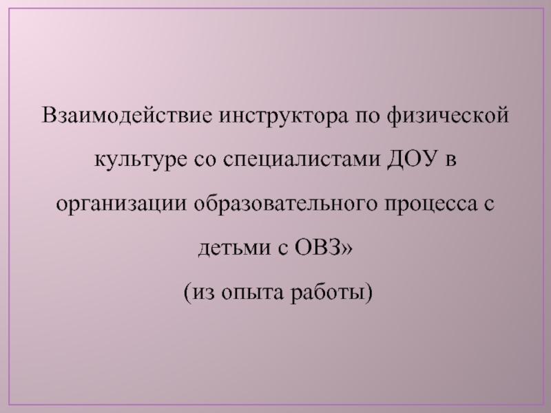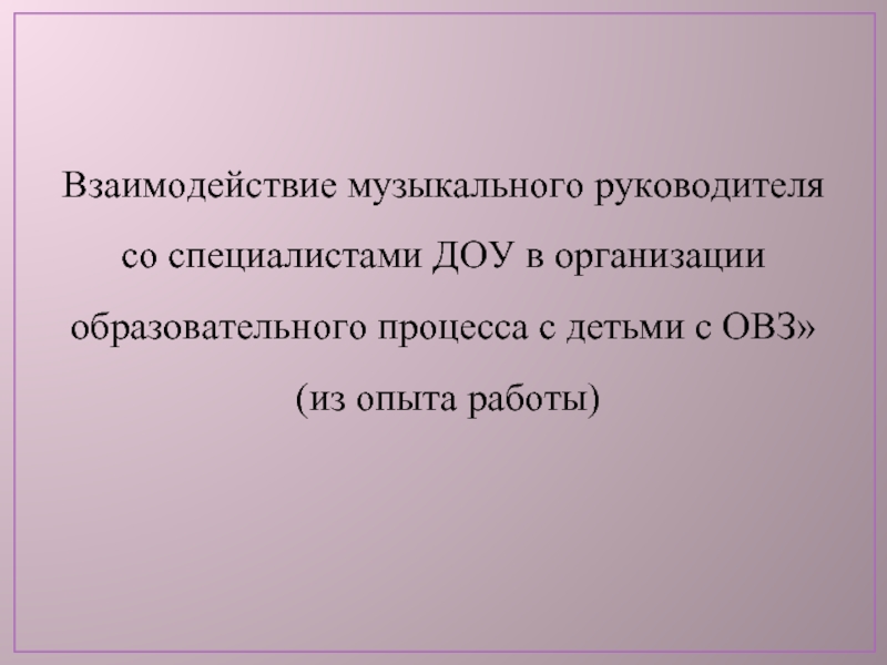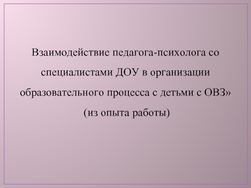 Слайд 1«Взаимодействие специалистов в организации образовательного процесса с детьми с ОВЗ»