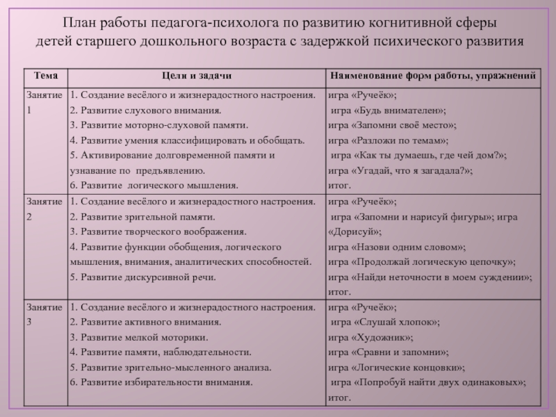 План работы педагога-психолога по развитию когнитивной сферы