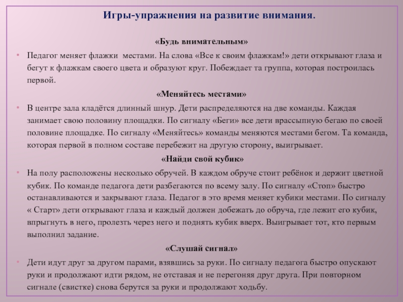 Игры-упражнения на развитие внимания.