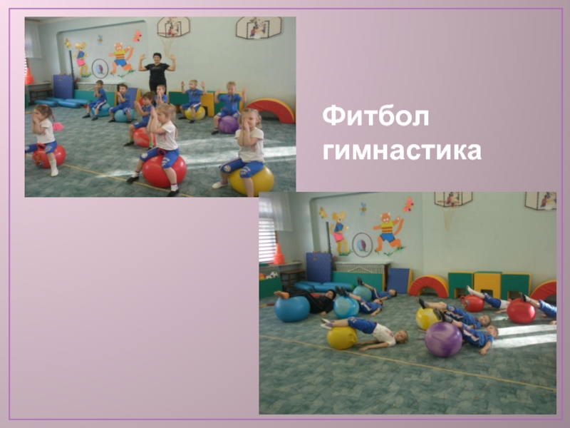 При организации коррекционно-оздоровительной работы используются все типы занятий (предметно-образные, сюжетно-игровые, комплексного характера, круговой тренировки, контрольные, с использованием тренажеров и спортивных комплексов). Также активно используется уникальное сочетание физкультурных упражнений и фитболов - это фитбол-гимнастика, фитбол-сказка, фитбол-подвижная игра.