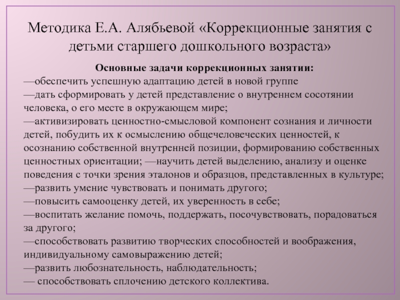 Слайд 7Методика Е.А. Алябьевой «Коррекционные занятия с детьми старшего дошкольного возраста»