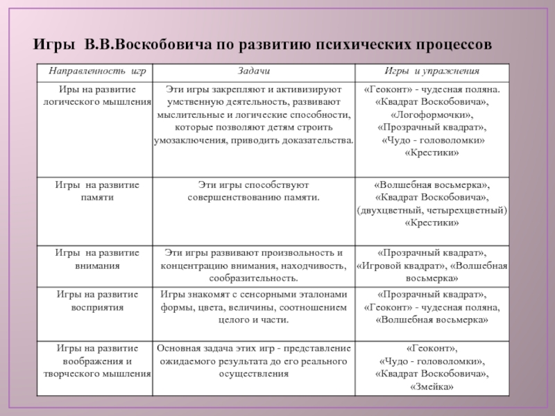 Слайд 10Игры В.В.Воскобовича по развитию психических процессов