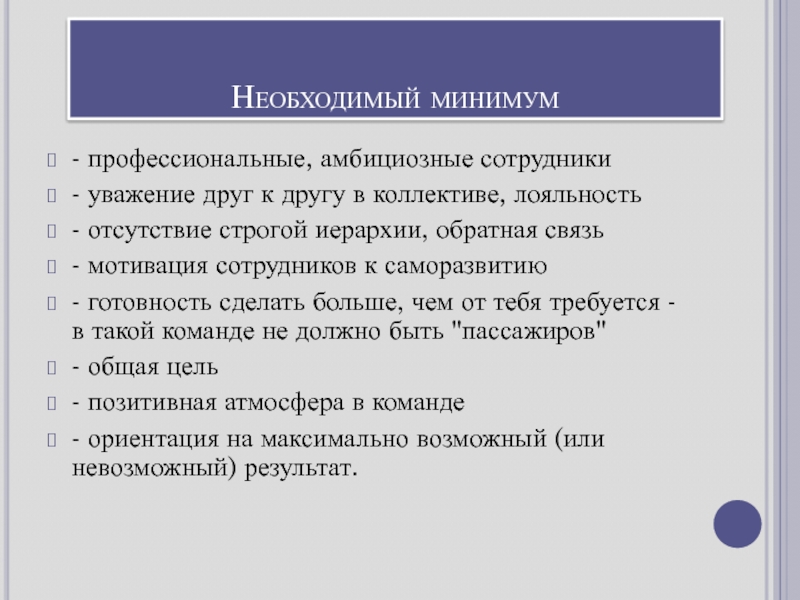 - готовность сделать больше, чем от тебя требуется - в такой команде не должно быть "пассажиров"