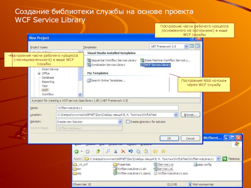 Создание служб на основе проекта WCF Service Library в среде Visual Studio,