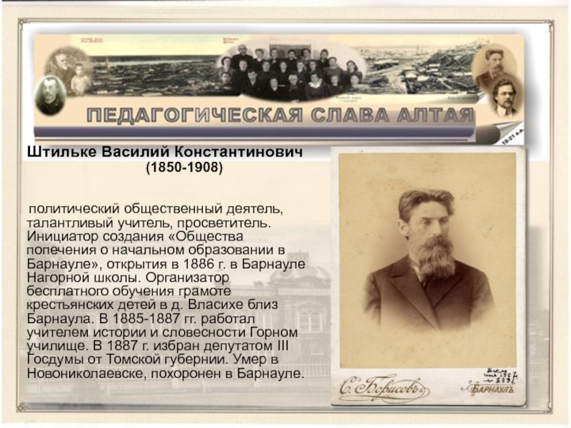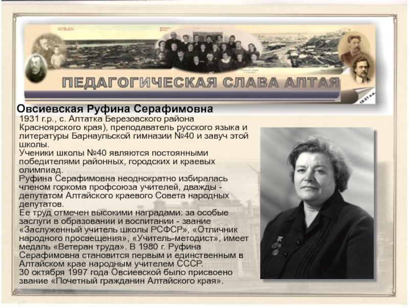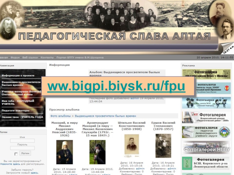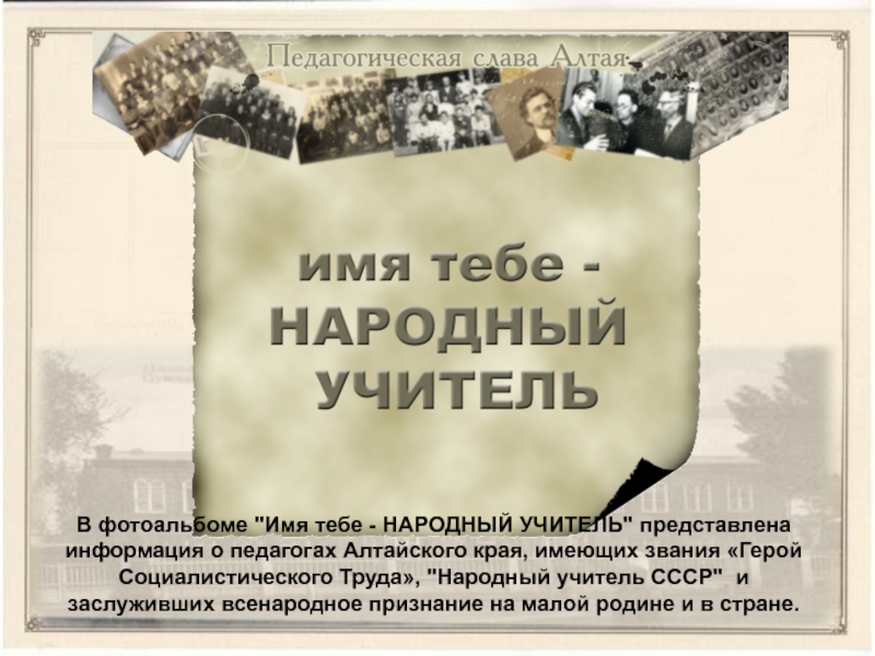 Слайд 1 WEB-фотогалерея "Педагогическая слава Алтая"