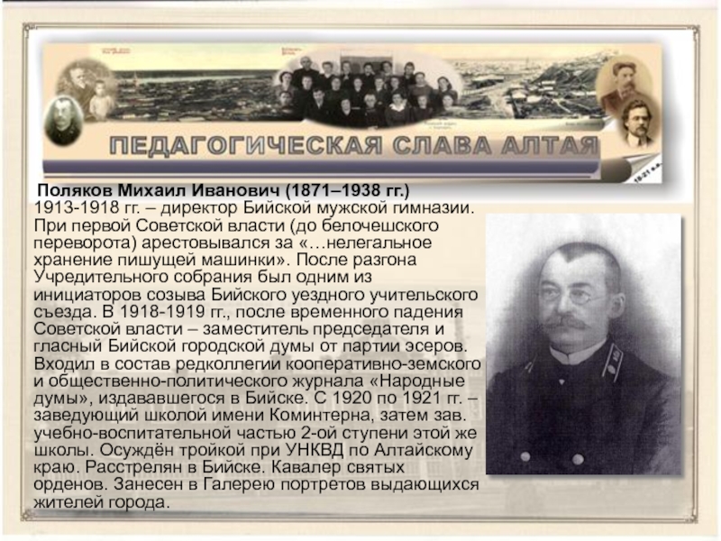 Слайд 9 Поляков Михаил Иванович (1871–1938 гг.)