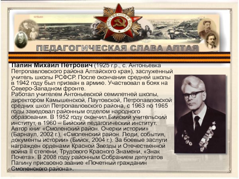 Слайд 32 Папин Михаил Петрович (1925 г.р.,