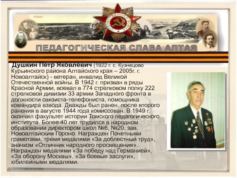 Слайд 25 Душкин Петр Яковлевич (1922 г.