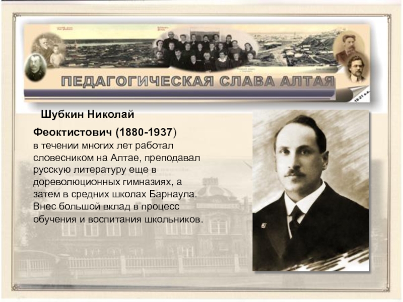 Слайд 10 Шубкин Николай Феоктистович (1880-1937)