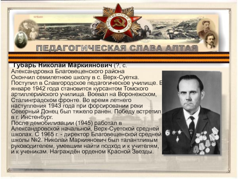 Слайд 29 Губарь Николай Маркиянович (?, с. Александровка Благовещенского района