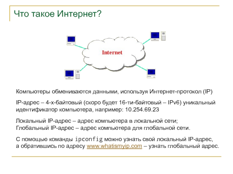 Глобальный IP-адрес – адрес компьютера для глобальной сети.