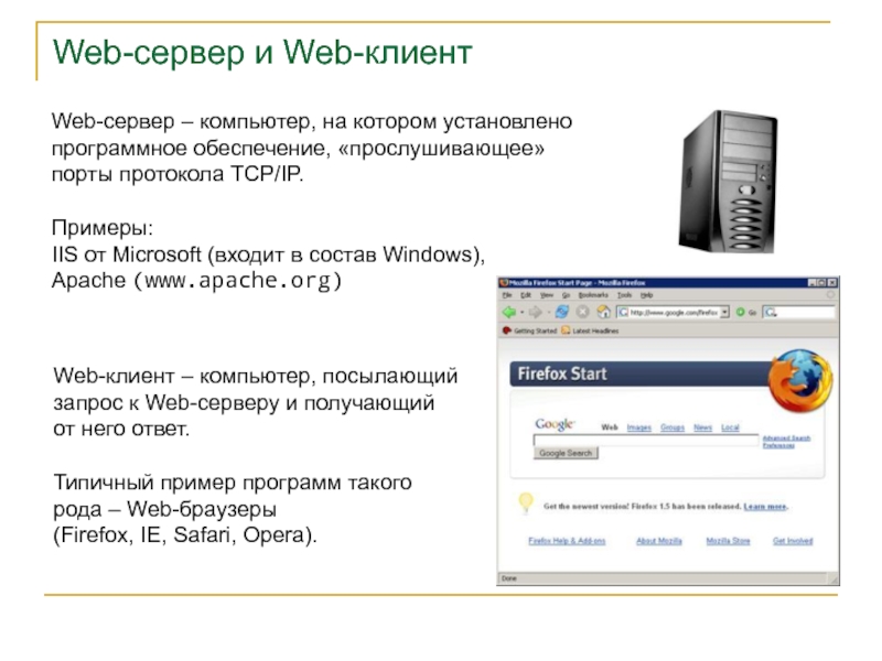 Web-клиент – компьютер, посылающий запрос к Web-серверу и получающий