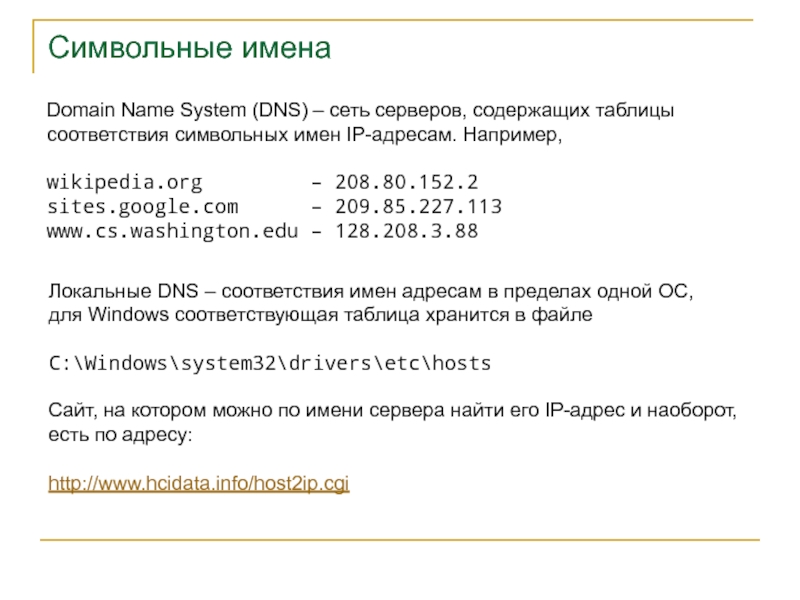 Локальные DNS – соответствия имен адресам в пределах одной ОС,