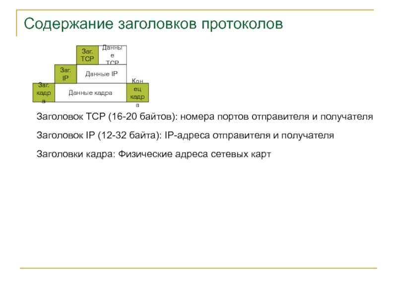 Заголовок IP (12-32 байта): IP-адреса отправителя и получателя
