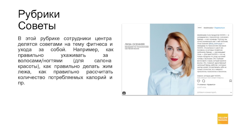 ухода за собой. Например, как правильно ухаживать за волосами/ногтями (для салона красоты), как правильно делать жим лежа, как правильно рассчитать количество потребляемых калорий и пр.
