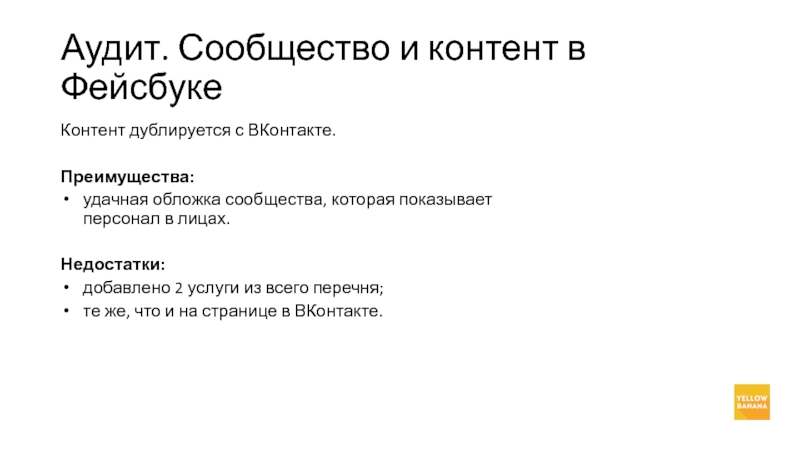 Слайд 18Аудит. Сообщество и контент в Фейсбуке