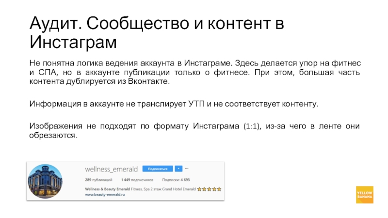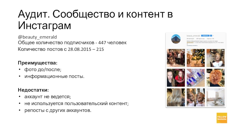 Слайд 11Аудит. Сообщество и контент в Инстаграм