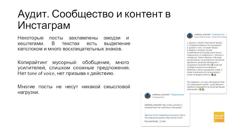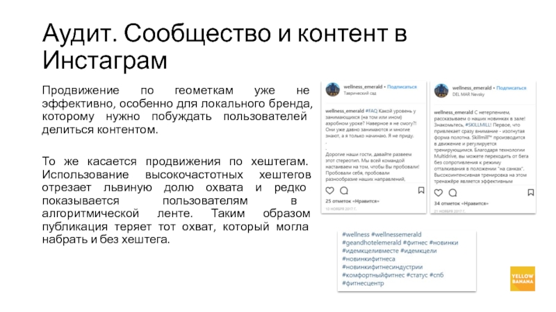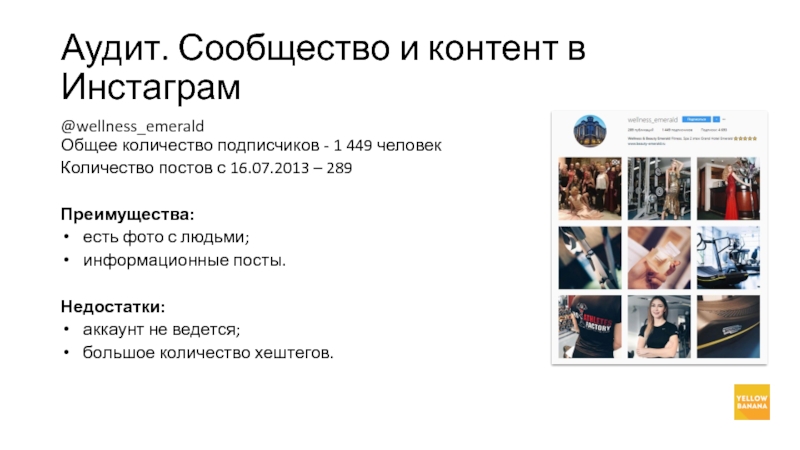 Слайд 13Аудит. Сообщество и контент в Инстаграм