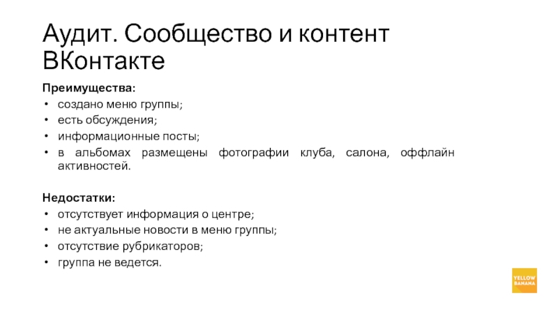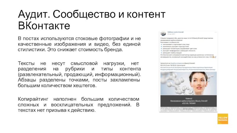 Слайд 4Аудит. Сообщество и контент ВКонтакте