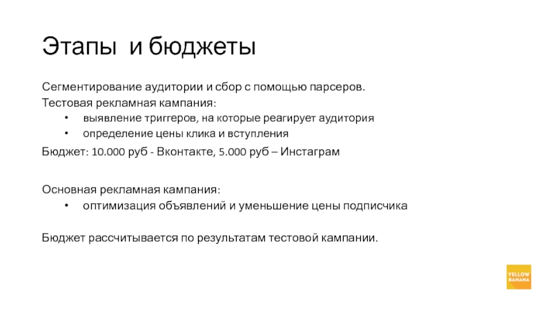 Бюджет: 10.000 руб - Вконтакте, 5.000 руб – Инстаграм