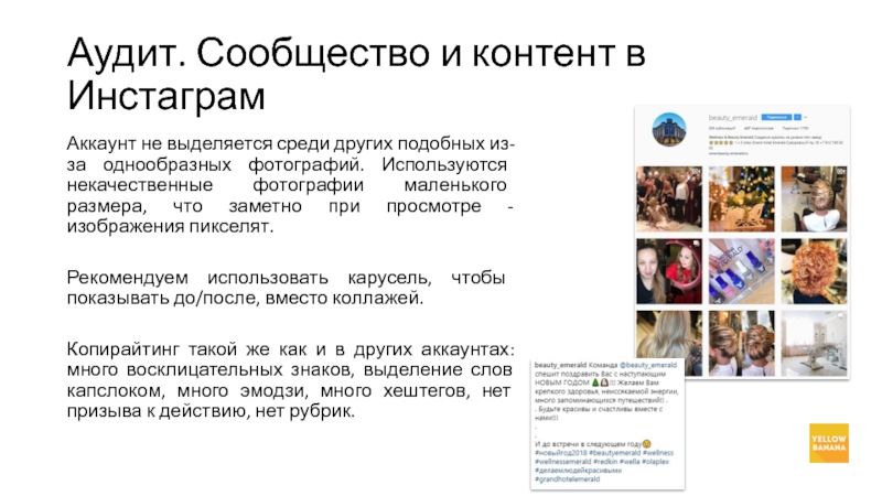 Слайд 14Аудит. Сообщество и контент в Инстаграм