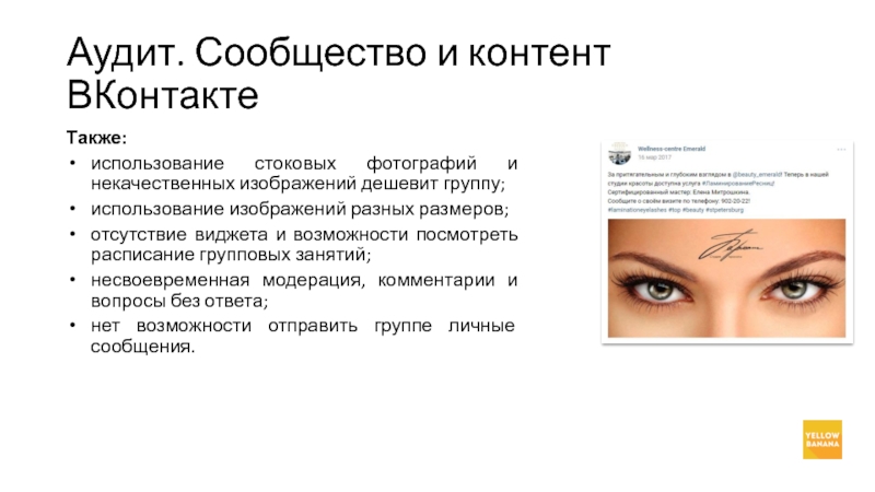 Слайд 6Аудит. Сообщество и контент ВКонтакте