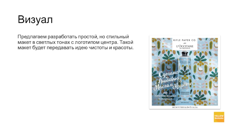 визуальный стиль бренда, не понятно, что за бренд, тк информация пуста, а используемые визуалы не отражают фирменный стиль. Рекомендуем добавить информацию, которая будет транслировать УТП и идею персонализированный подход к каждому клиенту.