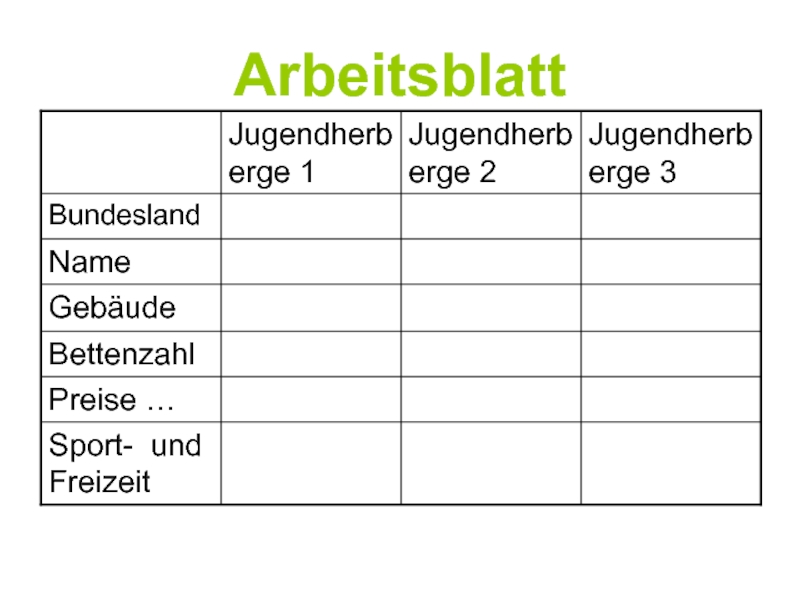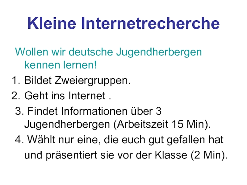 Findet Informationen über 3 Jugendherbergen (Arbeitszeit 15 Min).