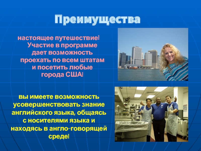 вы имеете возможность усовершенствовать знание английского языка, общаясь с носителями языка и находясь в англо-говорящей среде!