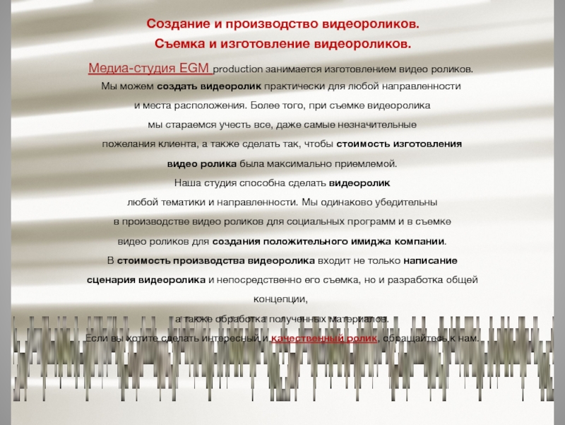 Медиа-студия EGM production поможет Вам создать качественные видеопрезентации.