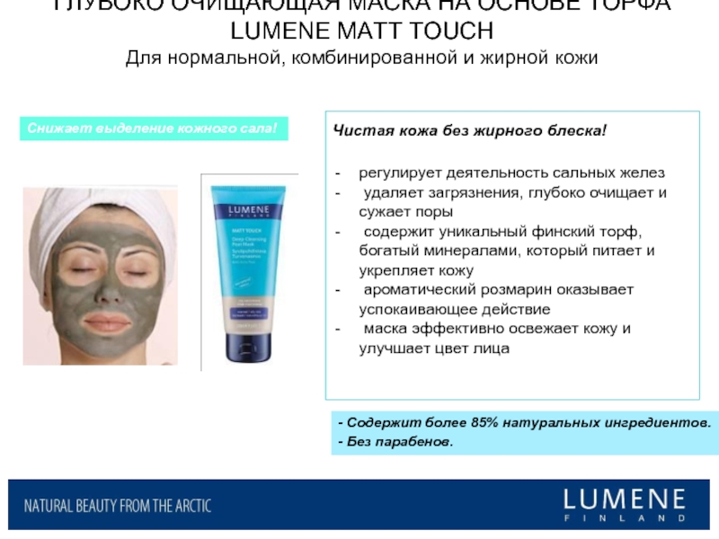 содержит уникальный финский торф, богатый минералами, который питает и укрепляет кожу