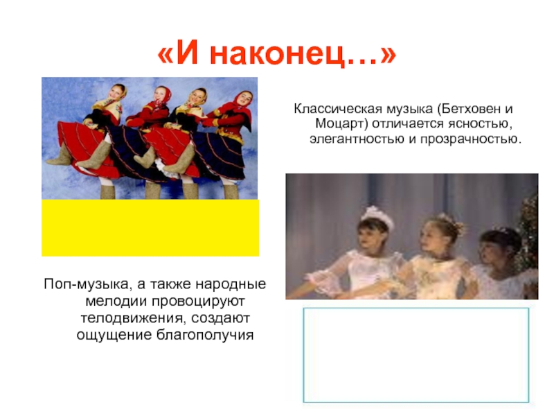 Классическая музыка (Бетховен и Моцарт) отличается ясностью, элегантностью и прозрачностью.