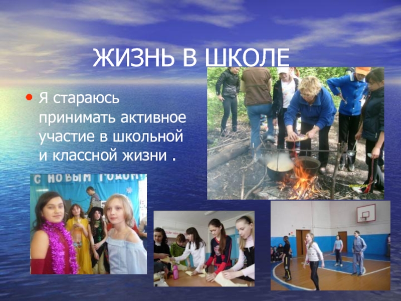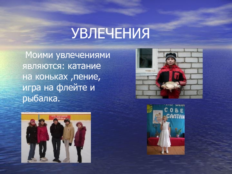 В детстве я любила танцевать, играть с куклами. В детский сад не ходила. Любимая игрушка – пудель Рекс. Мечтала иметь большую куклу и коляску для нее. Самое яркое событие в школе это как я давала первый звонок в День знаний, а в жизни – победа в конкурсе «Восходящая звезда» в номинации «Золотой голос школы». Ещё в 2008году я стала «Мисс осень 2008». Я была счастлива. В 7-9 лет я хотела стать манекенщицей, парикмахером, ветеринаром, бухгалтером, дизайнером и модельером. Свою первую грамоту я получила в 4-ом классе за активное участие в школьном мероприятии. В результате жизненного опыта я сделала вывод, что талант есть у каждого. Мой отец оказал на меня большое влияние. Потому что он ко мне очень строг. Переломный момент в моей жизни случился, когда умерла моя сестрёнка Даша. Моё отношение с родителями и друзьями нормальное. Я интересуюсь танцами, пением и игрой на флейте. Мне нужно усовершенствоваться в школьных предметах , чтобы стать отличницей. Мои любимые школьные предметы – геометрия и математика. Предмет, который мне нужен для овладения профессии - рисование. У меня по этому предмету почти все пятёрки.