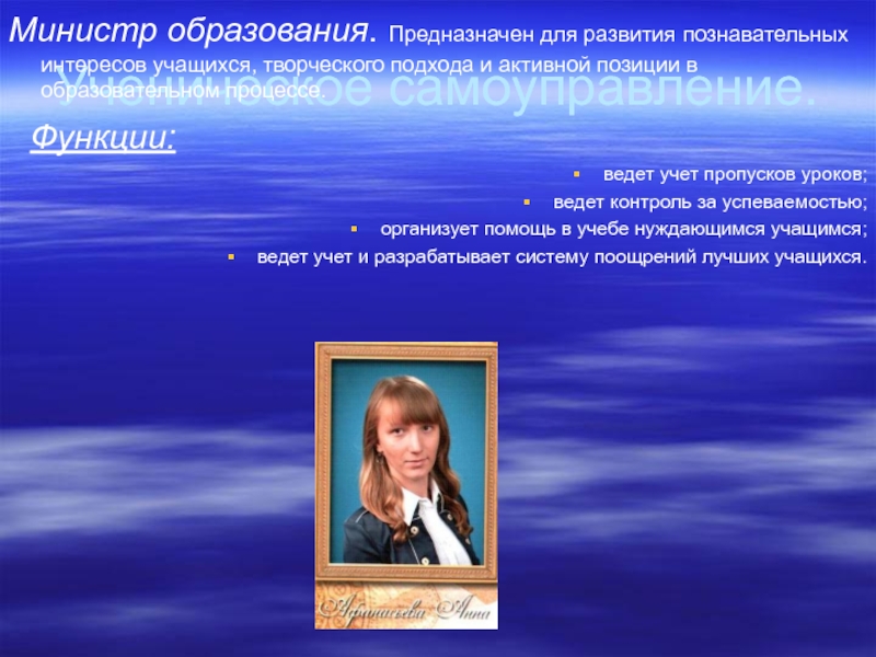 Министр образования. Предназначен для развития познавательных интересов учащихся, творческого подхода
