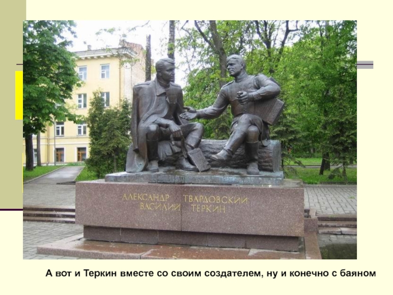 А вот и Теркин вместе со своим создателем, ну и конечно с баяном