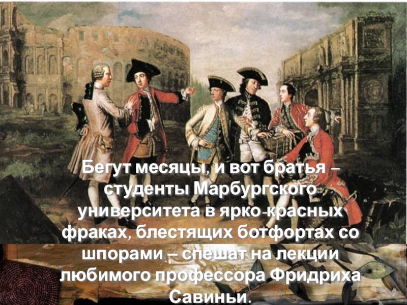 Слайд 9Бегут месяцы, и вот братья – студенты Марбургского университета в ярко-красных