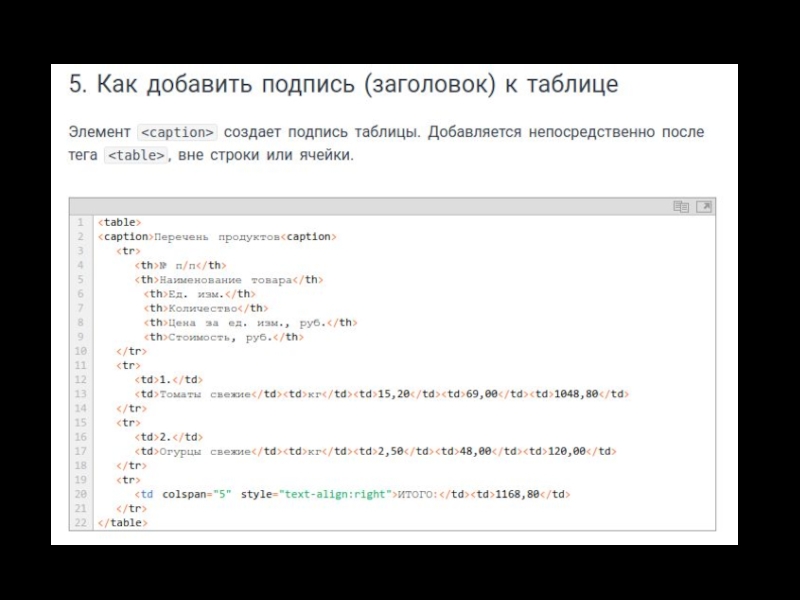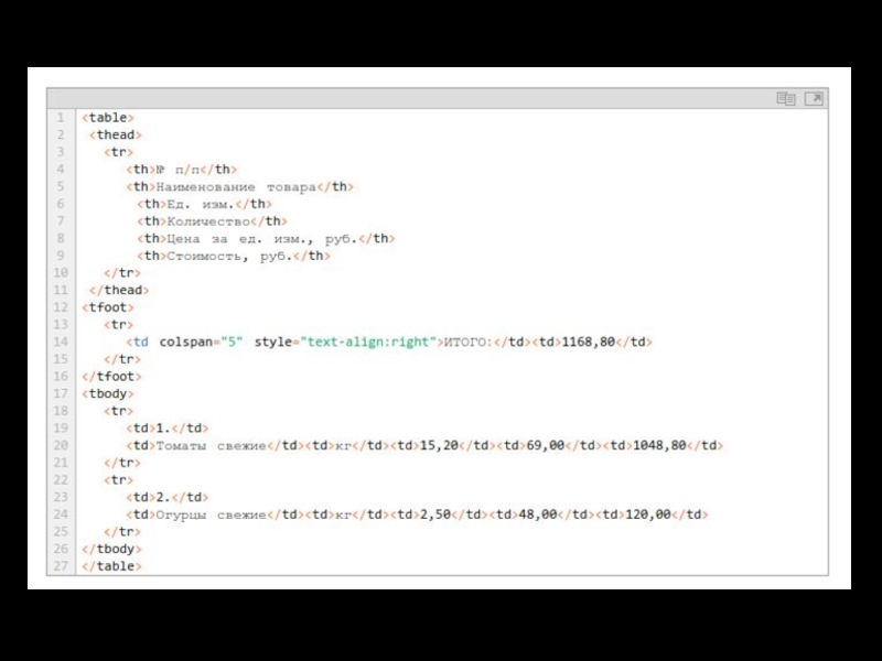 Слайд 22Теги для ввода «компьютерного» текста 3.1. Тег Служит для выделения фрагментов программного