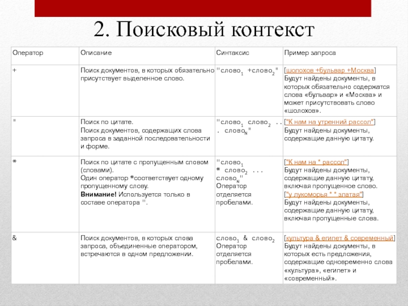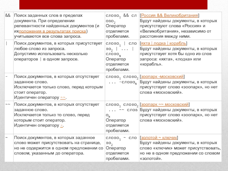 В различных поисковых системах язык запросов может различаться, однако обычно он