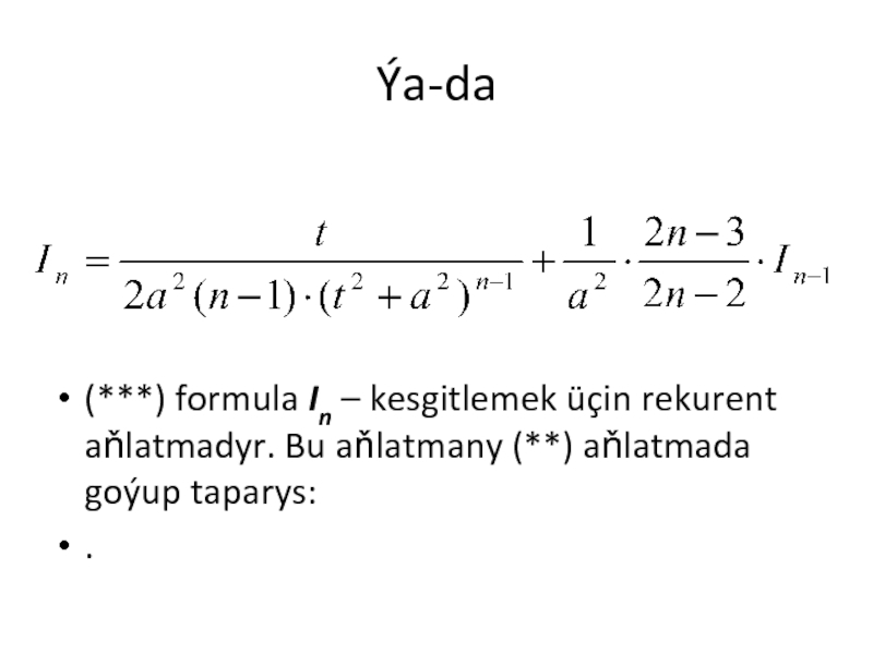 Слайд 12IÝ tipdäki integral üçin ýazarys: